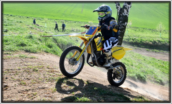 | Trénink dětí po zahradě okolo švestek už se nám omrzel a chtělo to něco nového. Proto jsme s Davidem a vnučkami vyrazili na trénink dětí na motokrosovou trať ve Žlutavě. Závody se nejedou a tak přišla vhod i taková akce, abych si vyzkoušel jestli jsem to s foťákem nezapomněl. Sjeli se tam úplní nováčci (naše slečny), až po střelce, jimiž byli sourozenci Kameníkovi. Naše holky jezdily jen krátký okruh a stejně toho měly plné brýle, ostatní jezdili okruh celý. Holky se otrkaly a zjistily, jak to vypadá na skutečné trati. Někdy nám běhal mráz po zádech, ale nakonec jsme odjížděli spokojeni. |