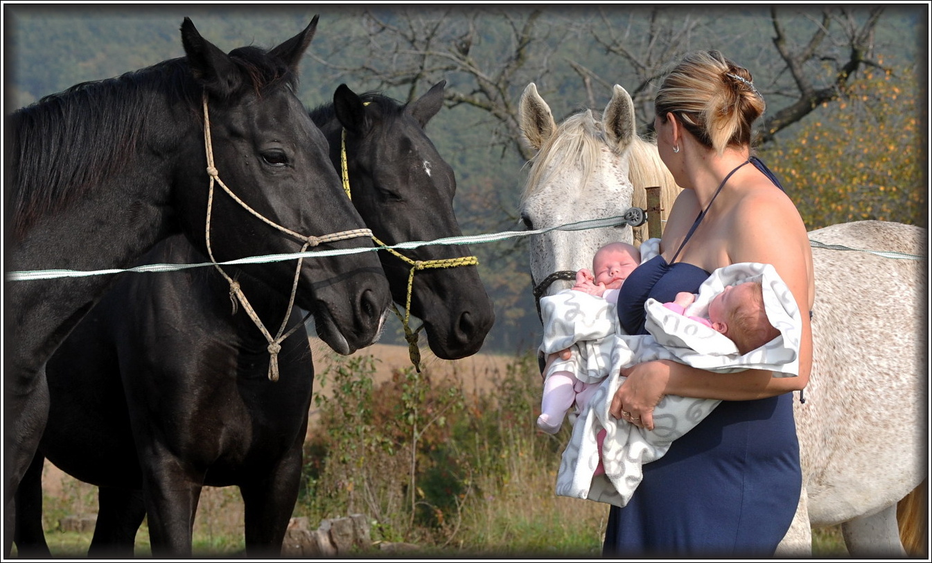 Vítání občánků Adélky a Barborky Šigutových proběhlo ve slavnostní atmosféře v obřadní síni radnice ve Zborovicích za účasti všech babiček a dědečků, samozřejmě pyšných rodičů, tetičky, strýčka a jednoho pradědečka. Prababička z otcovy strany se omluvila. Občánky jsme uvítali řádně, i slivovicí a ve vítání jsme pokračovali ještě doma do pozdních večerních hodin. V neděli dopoledne jsme jeli s děťátky fotit na místa, kde jsme asi týden před porodem fotili maminku s bříškem. Fotky budou později.